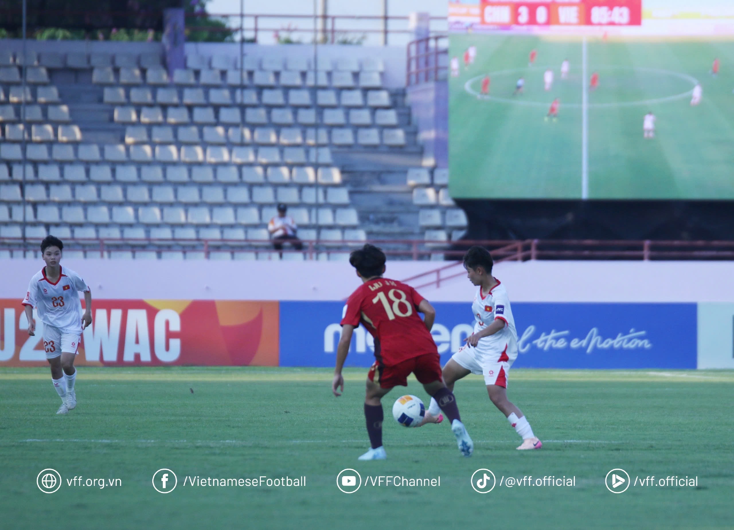 Phút 77, từ quả đá phạt bên cánh trái, hàng thủ Việt Nam không thể hóa giải tình huống bóng bổng, tạo điều kiện để Zeng Yujia dứt điểm bồi ghi bàn thắng thứ ba, ấn định chiến thắng 3-0.