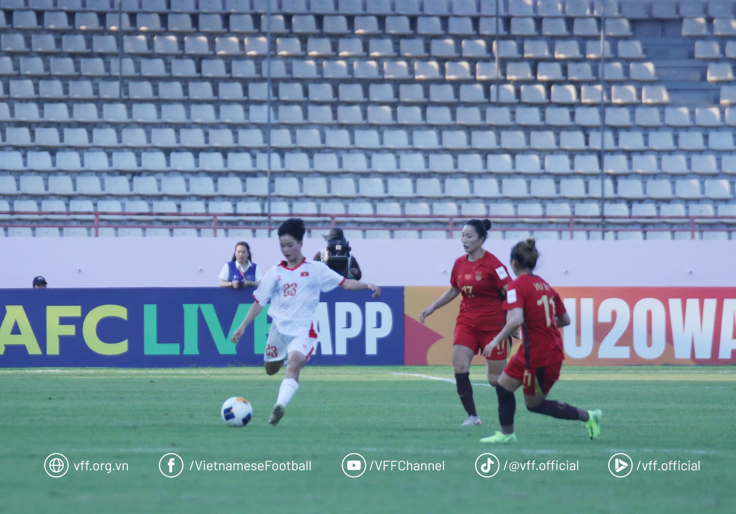 Bước sang hiệp 2, U20 nữ Trung Quốc kiểm soát thế trận và tạo ra thêm nhiều cơ hội. U20 nữ Việt Nam dù rất nỗ lực nhưng gặp nhiều khó khăn trong việc triển khai bóng lên phía trên.