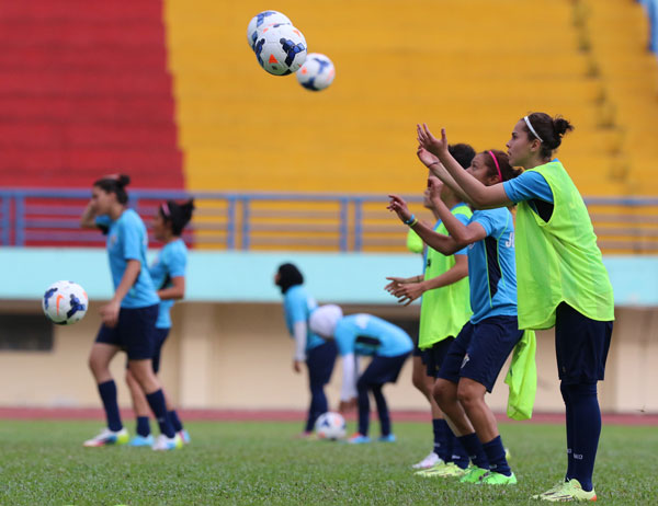 Cũng trong chiều nay (12-5), ĐTQG nữ Việt Nam đã có buổi tập nhẹ trong vòng 40 phút trên sân Phú Thọ. Ngay trong buổi tập, Trần Thị Kim Hồng, Lê Thu Thanh Hương và Nguyễn Thị Nga bị căng cơ và đau nhẹ. Mặc dù vậy, theo HLV Trần Vân Phát, các tuyển thủ sẽ sớm vượt qua ngay trước trận đấu khai mạc.