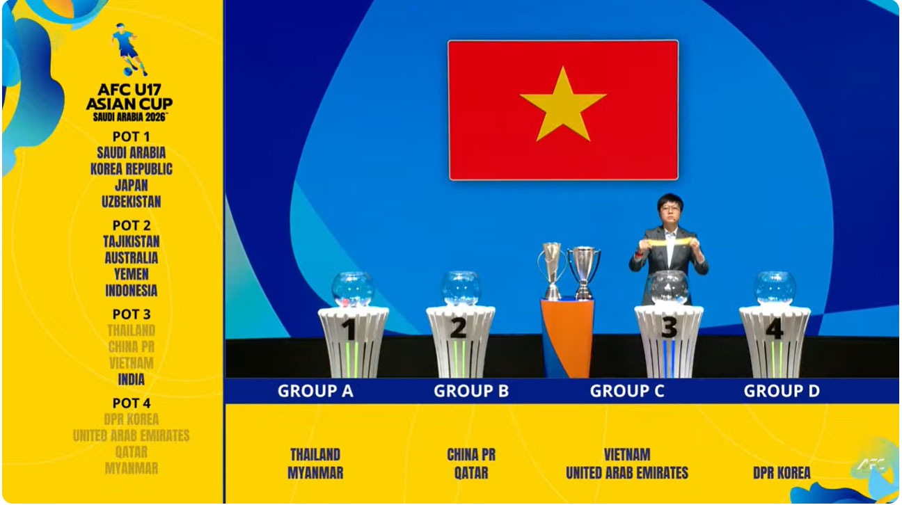 VCK U17 châu Á 2026: U17 Việt Nam vào bảng C cùng Hàn Quốc, UAE và Yemen