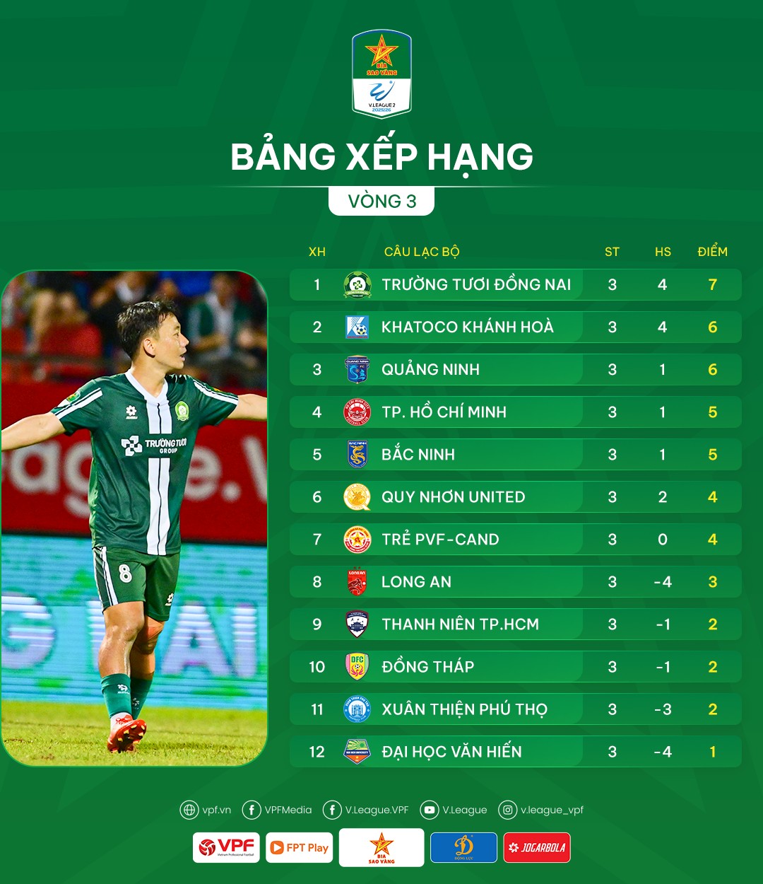 Bảng xếp hạng sau vòng 3 Giải HNQG Bia Sao Vàng 2025/26: