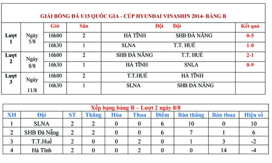 Với kết quả này, U15 Sông Lam Nghệ An (6 điểm) tạm thời vươn lên đầu bảng A. U15 SHB Đà Nẵng (6 điểm) xếp vị trí thứ Nhì do thua SLNA về hiệu số. U15 Thừa Thiên Huế và U15 Hà Tĩnh xếp hai vị trí cuối cùng ở bảng B.